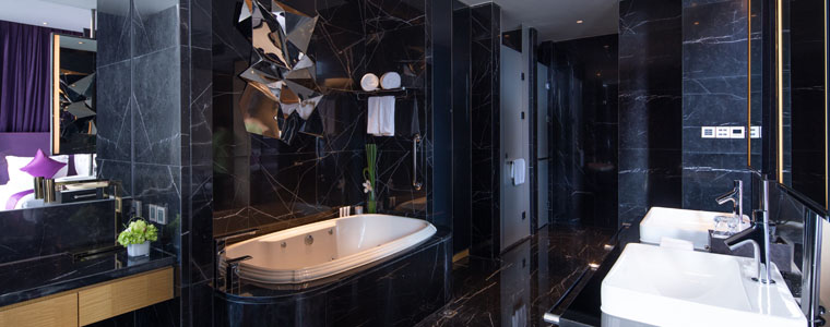 Two suites with two master bedrooms (with separate double bathtubs), living room, dining room, study, three bathrooms (2 master bathrooms and 1 guest bathroom), party balcony (barbecue experience package can be booked).